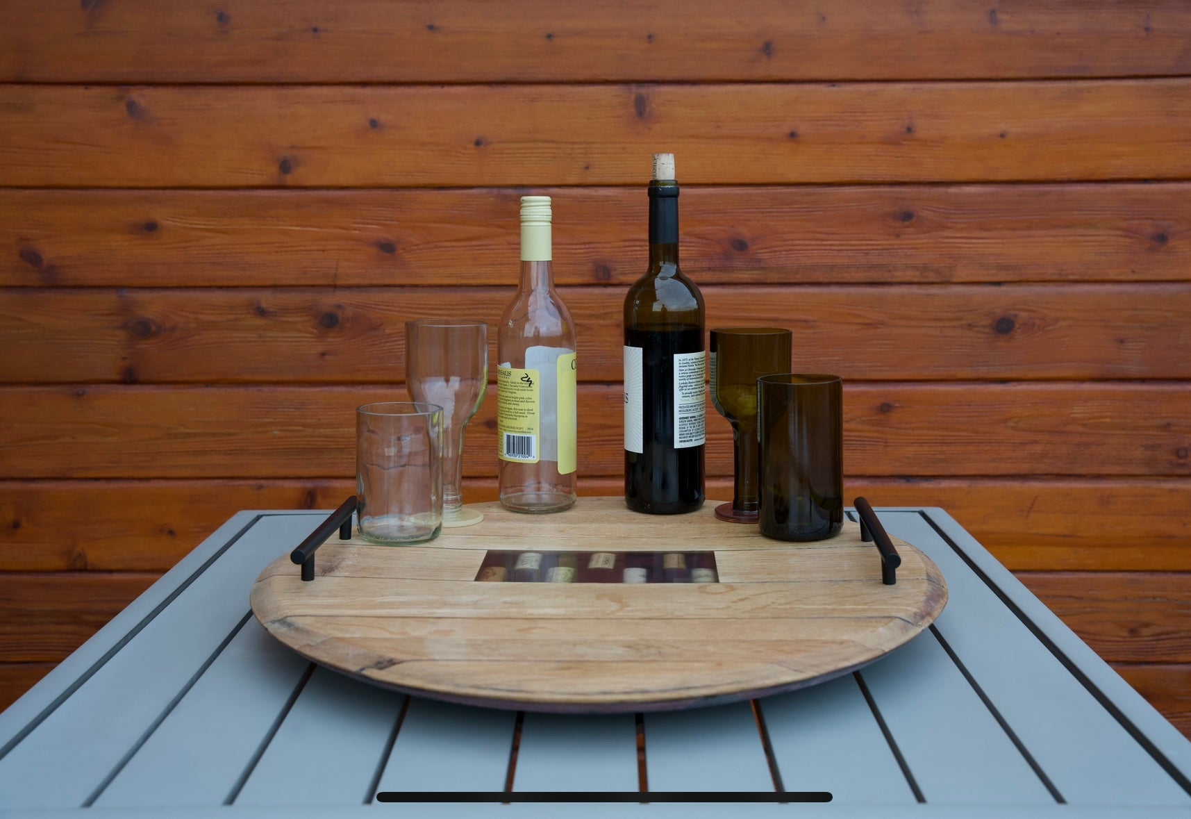 Cork Embedded Lazy Susan Serving Tray From Retired Wine Barrel