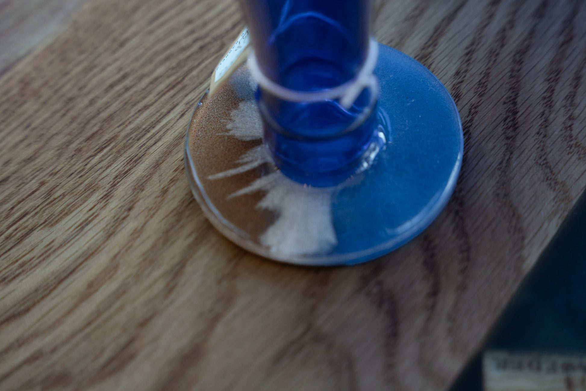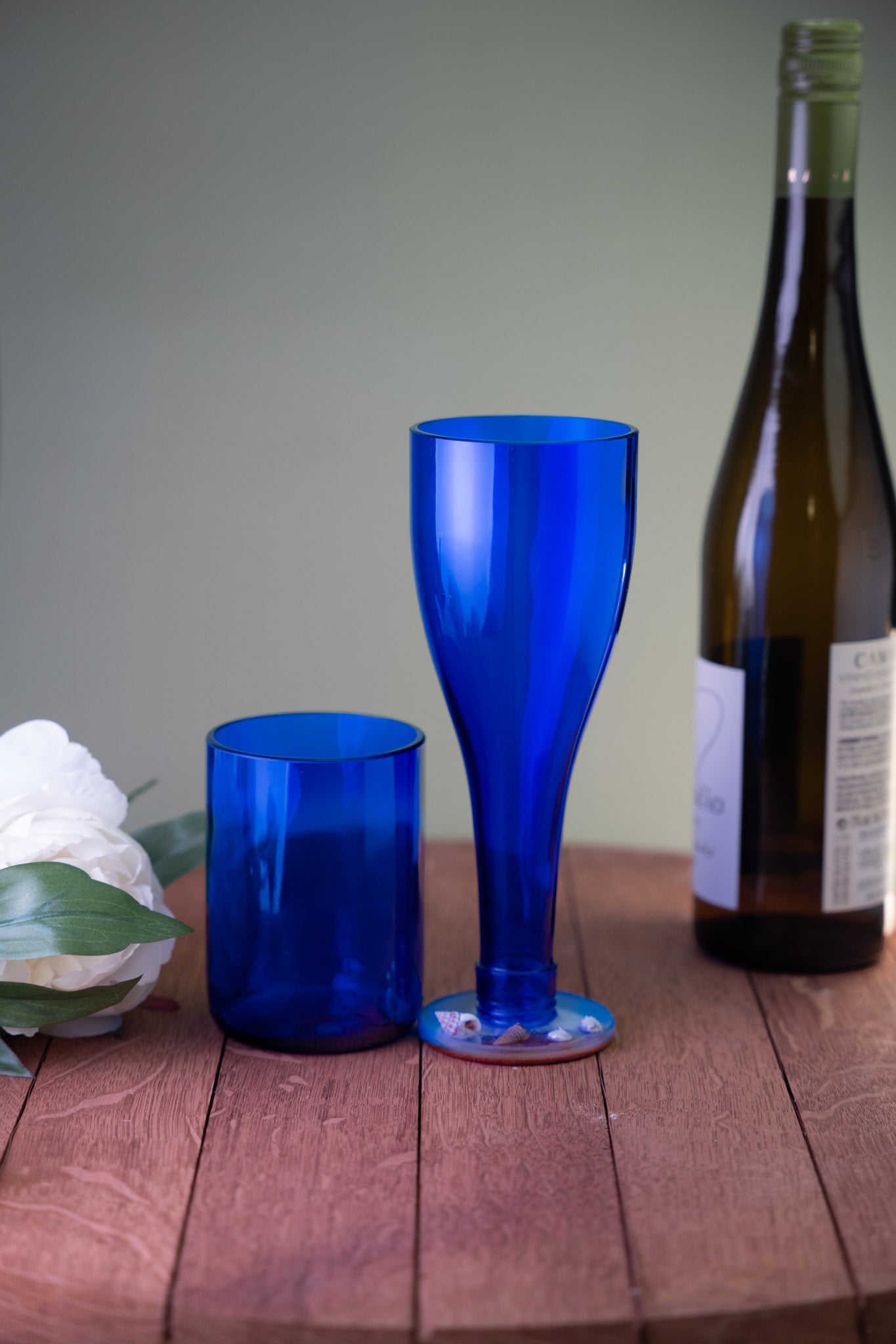 They say if you drink wine out of this glass with your eyes closed, you can hear the waves at the beach!